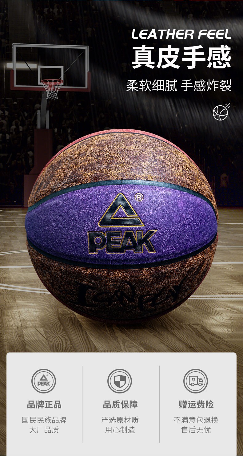 匹克 7号超纤篮球真皮质感比赛专用耐磨吸汗磨砂翻毛成人用球中小学生成人训练室内外通用比赛蓝球 深混色 7号成人比赛用球