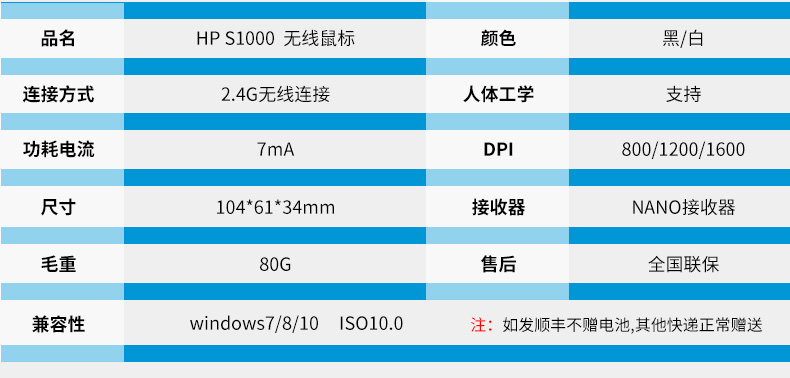 惠普(HP)S1000 Plus 无线鼠标 办公鼠标 黑色