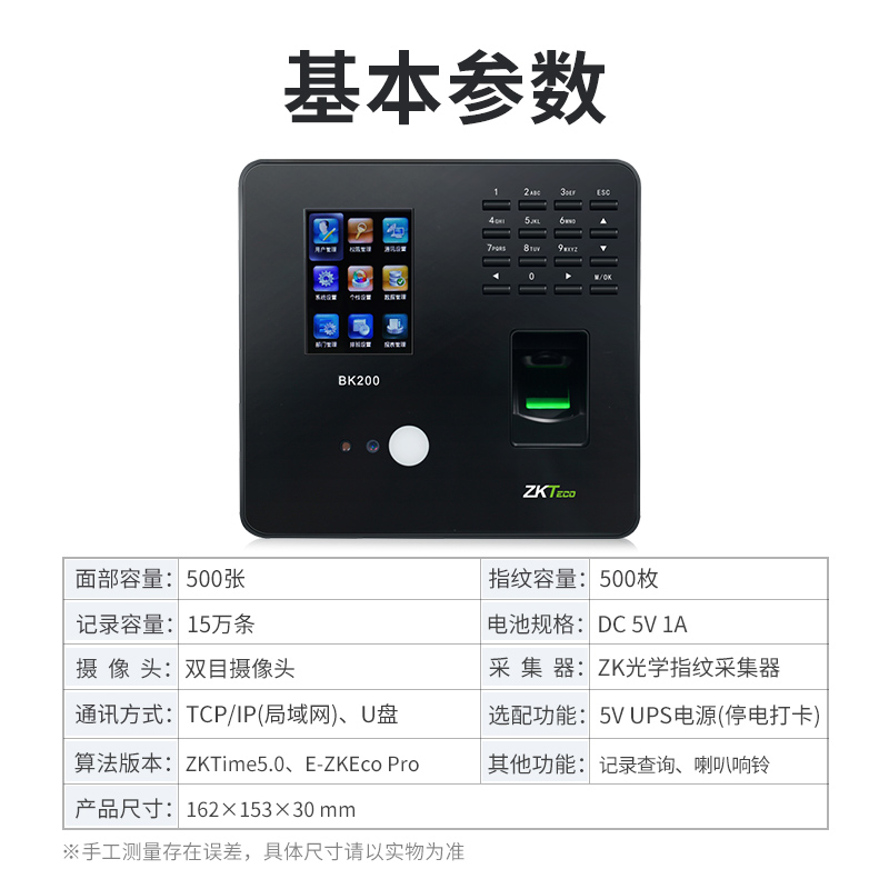 ZKTECO 熵基科技智能人脸识别指纹考勤机指纹式打卡机签到机器上班刷脸识别面部考勤ZK3960 BK200(动态人脸识别) 标配