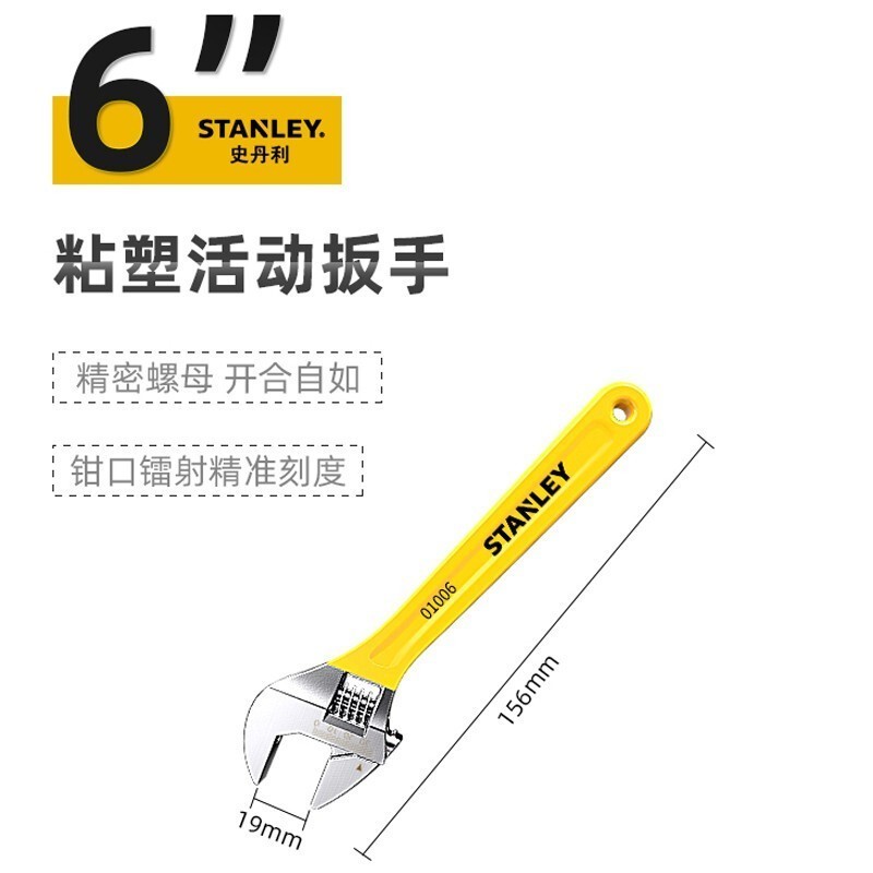 史丹利(STANLEY)B系列沾塑柄活动扳手多功能汽修车机修活络扳手开口扳手 STAD01008-23 (8英寸)