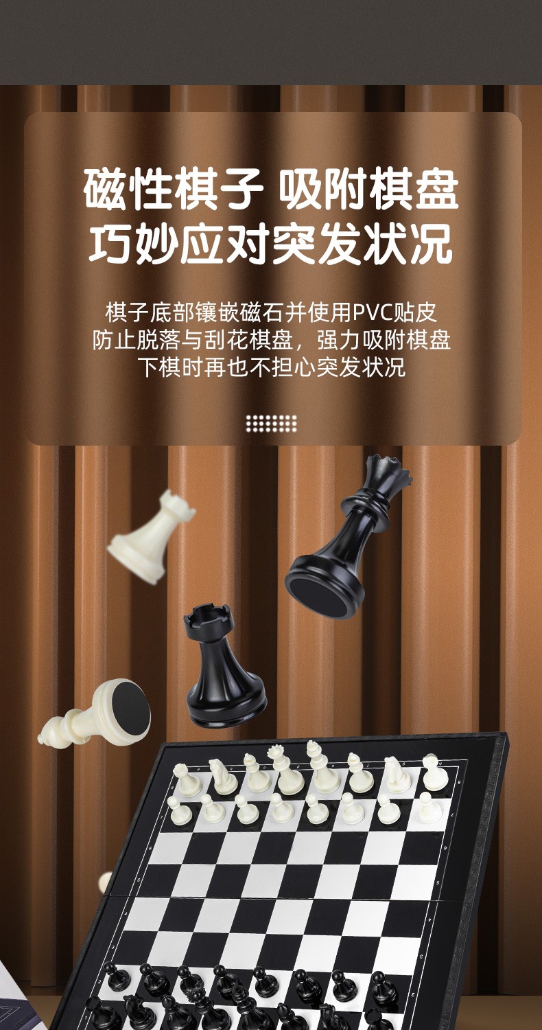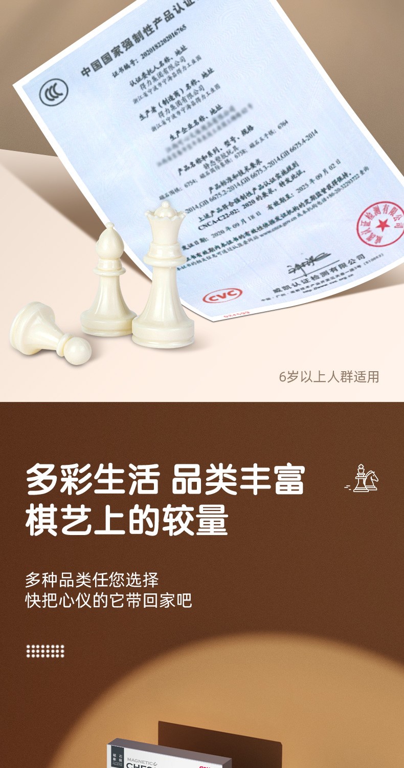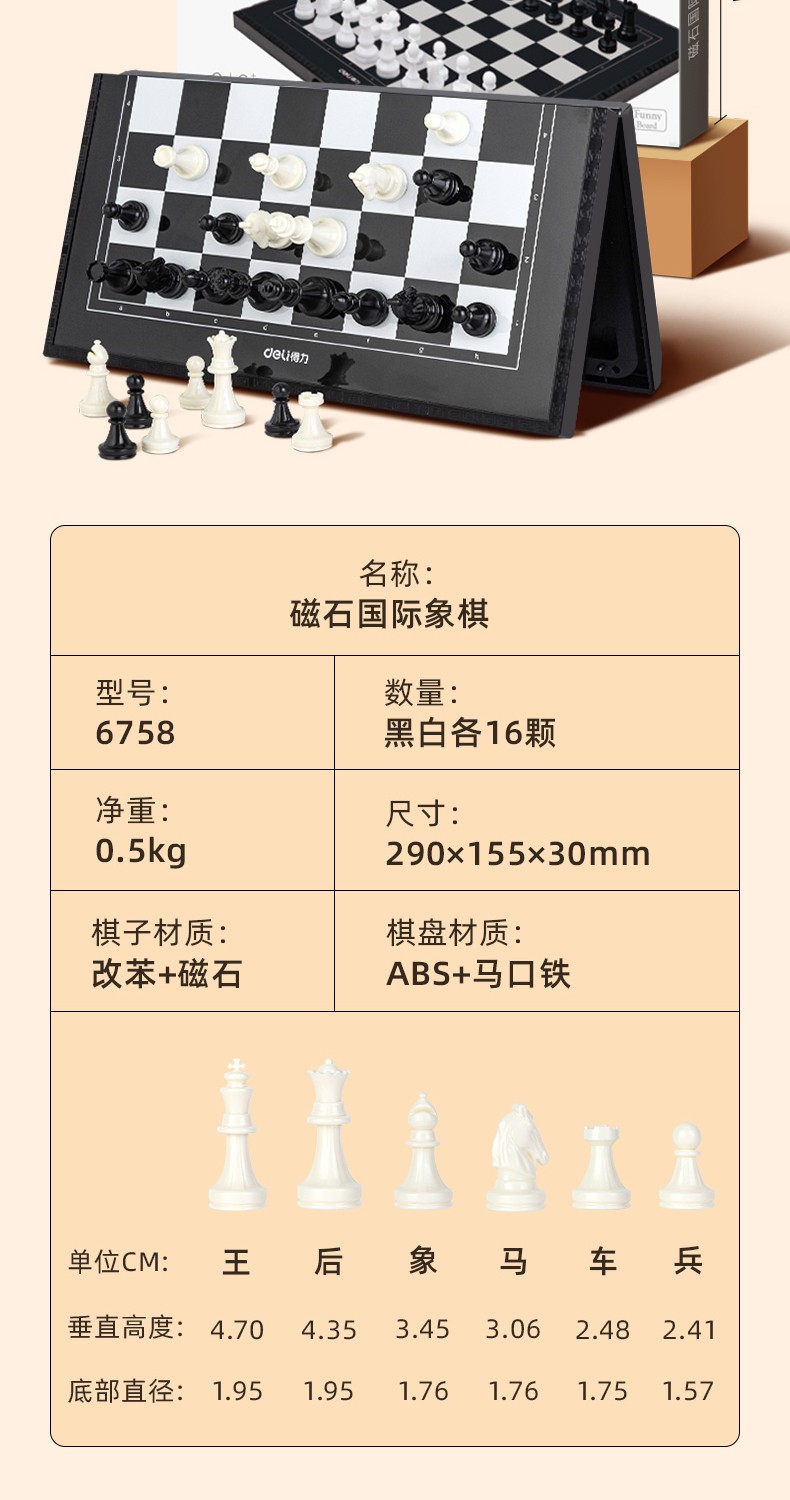 得力(deli) 国际象棋小学生儿童初学者便携象棋带磁性棋盘比赛专用磁石棋 【黑白棋盘】可折叠棋盘+收纳盒
