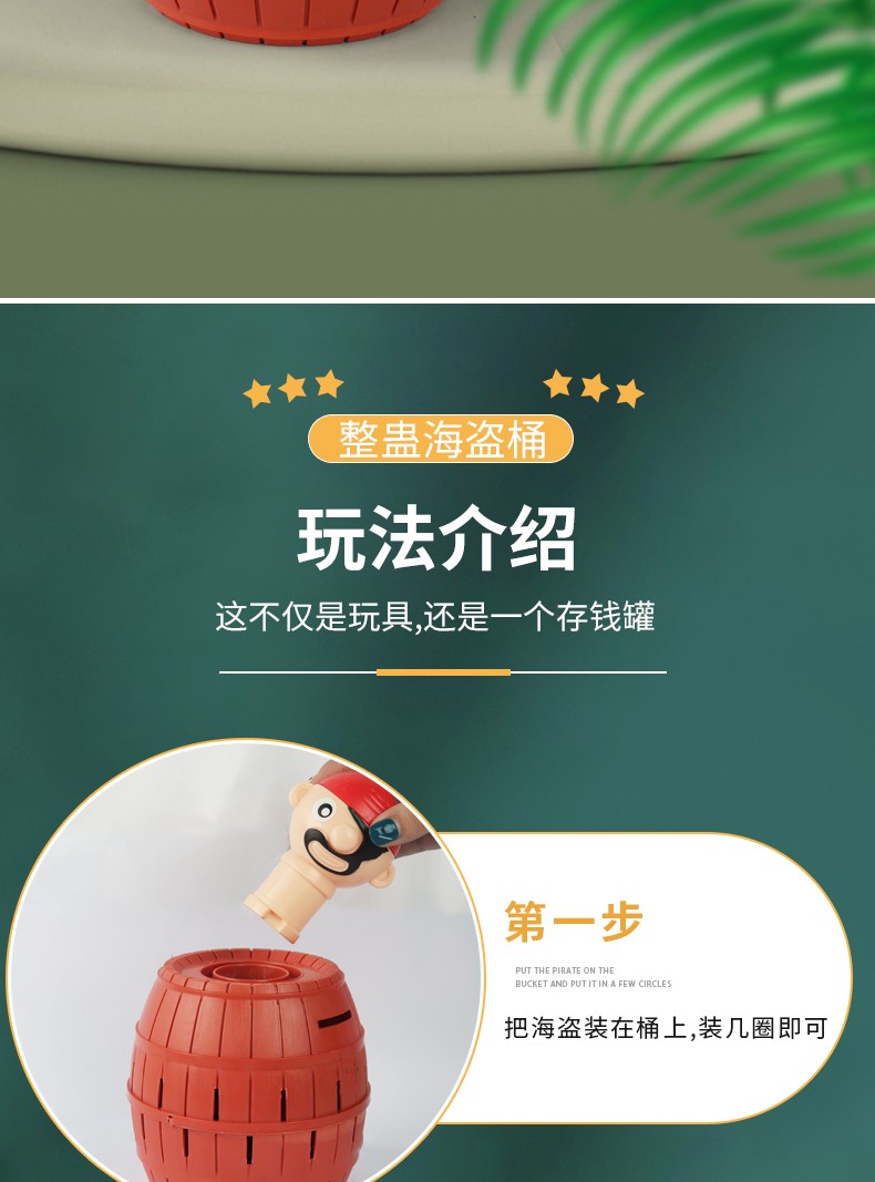 华诗孟儿童大号疯狂海盗桶玩具叔叔插刀剑木桶存钱罐创意整蛊恶搞搞怪插刀整人玩具礼物